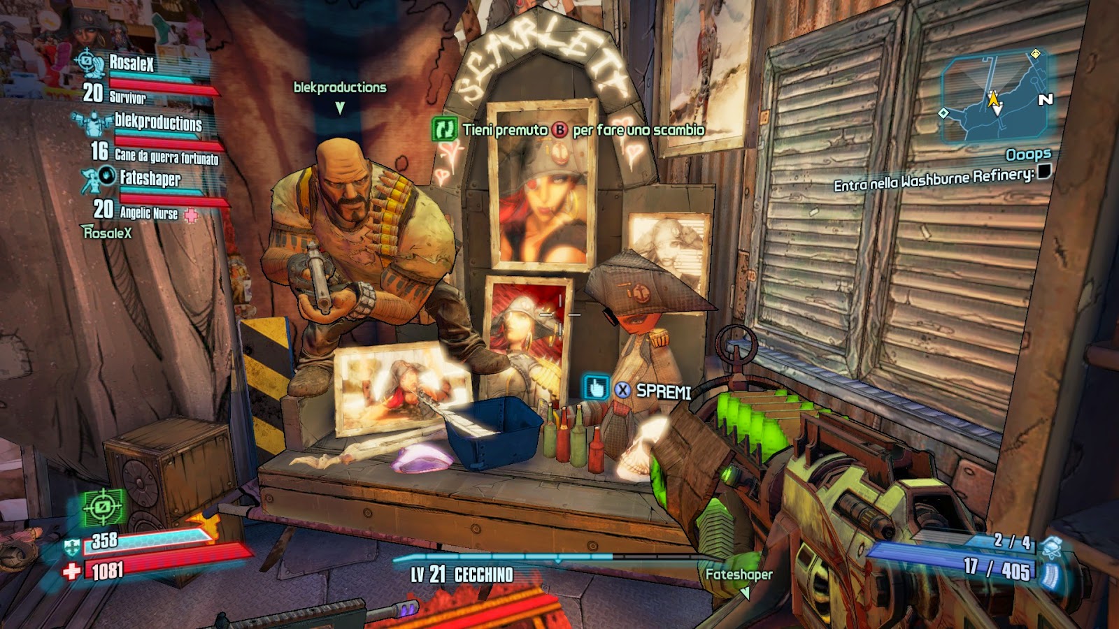Abbiamo finito le quest principali di Oasis uccidendo il nemico gigante che esce alla fine, entrando poi in una stanza piena di casse con armi rare ma non troppo, però potrebbe essere interessante rifarlo per farmare loot e un po' di EXP :P